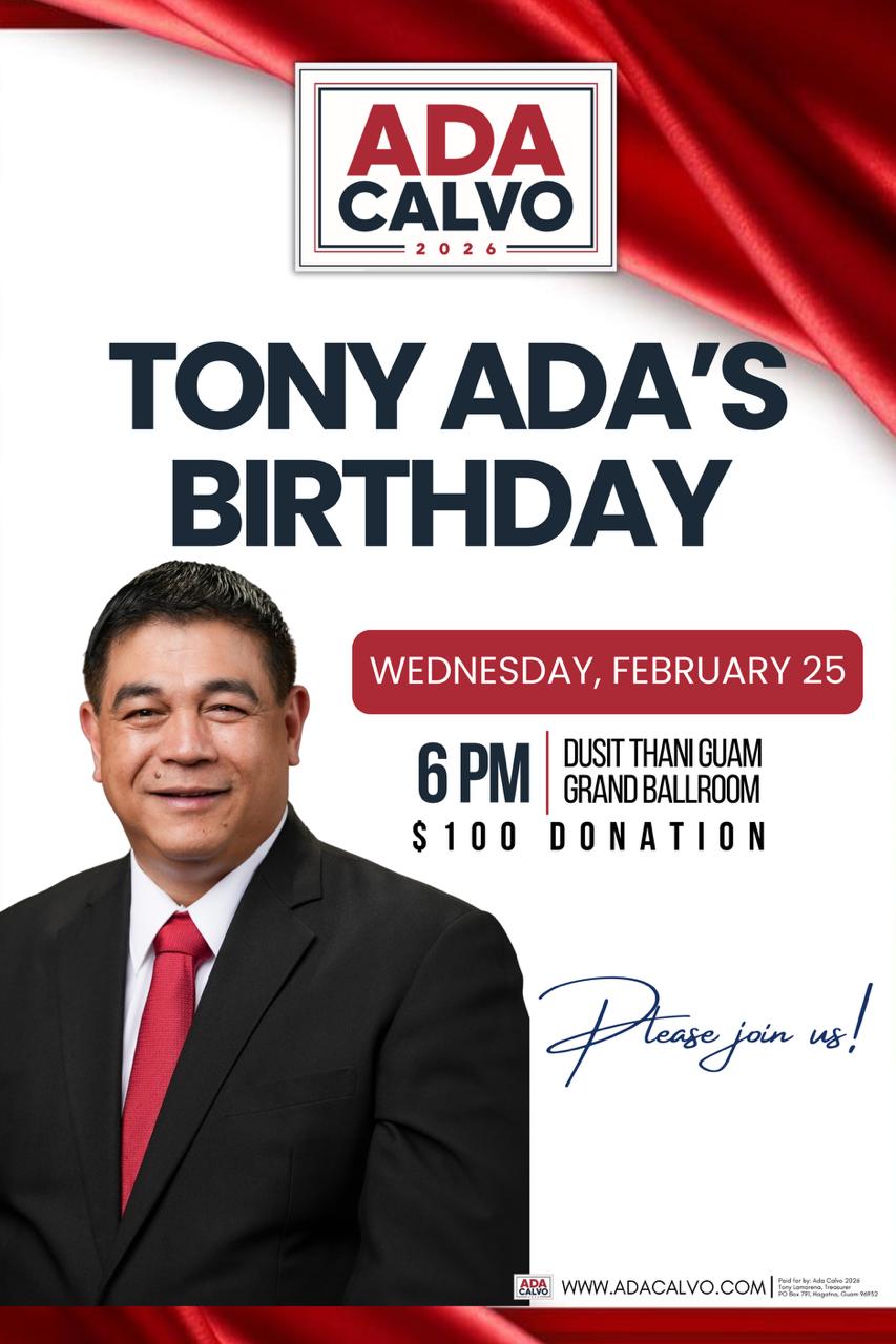 Join us as we celebrate Vice Speaker Tony Ada’s Birthday! Please join us for an evening of dinner, fellowship, and celebration as friends and supporters come together to honor his leadership and service to Guam.